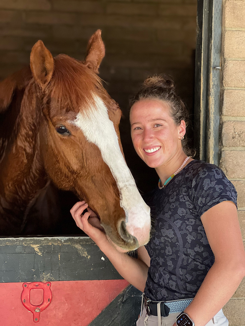 It has always been Sam’s dream to build a career working with horses. She grew up riding hunter/jumpers primarily while also participating in 4-H and other equestrian programs in rural Illinois, developing a strong foundation in equitation, ringcraft, and correct horsemanship from a young age.